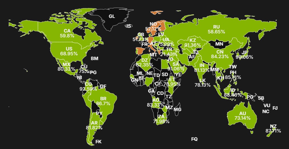 Harta rezultatelor parțiale în diaspora, ora 22:18: