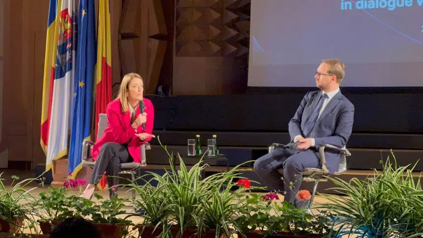 În cadrul vizitei sale la Timișoara, Roberta Metsola, președinta Parlamentului European, a participat la un dialog intens și autentic cu aproximativ 800 de elevi și studenți, unde s-au abordat teme de actualitate precum securitatea europeană, războiul din Ucraina, democrația și maturizarea discursului politic.