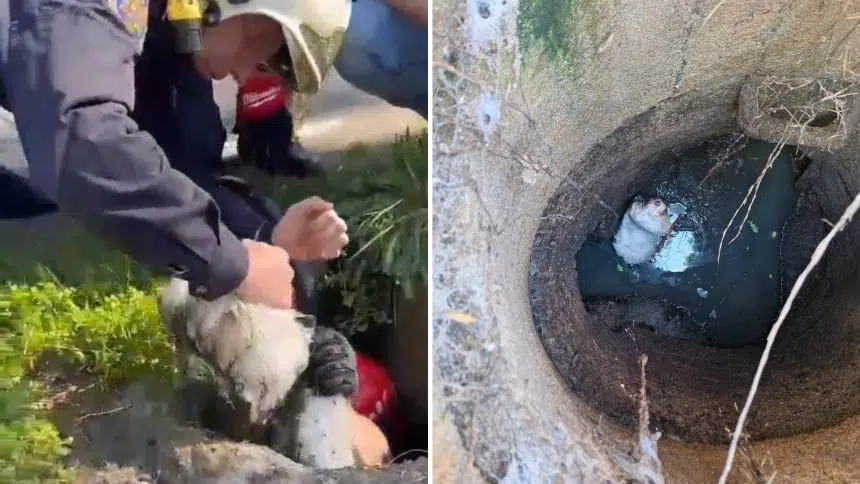 Din fericire, autoritățile au fost alertate imediat și au acționat fără ezitare. Echipa de salvare, echipată corespunzător și pregătită pentru astfel de intervenții, a reușit cu multă atenție și pricepere să recupereze cățelul din canalul adânc, punându-i în siguranță viața.