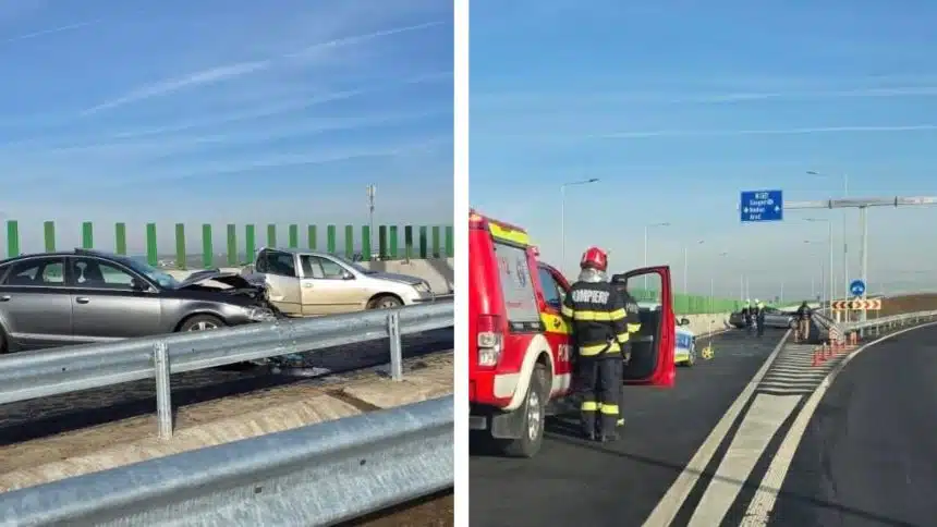 Un accident rutier a avut loc pe DN 69 A, între Sânandrei și autostrada A1. Un bărbat de 51 de ani, aflat la volanul unui autoturism, a intrat în coliziune cu mașina din fața sa, condusă de un bărbat de 73 de ani. În urma impactului, șoferul în vârstă a fost rănit.