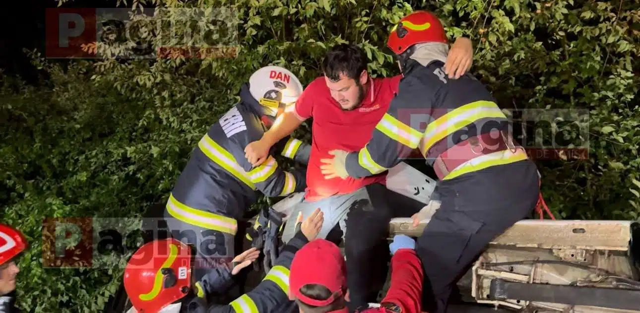 La fața locului a ajuns de urgență un echipaj din cadrul ISU Timiș, care a reușit să îl scoată pe tânărul de 20 din mașina răsturnată.