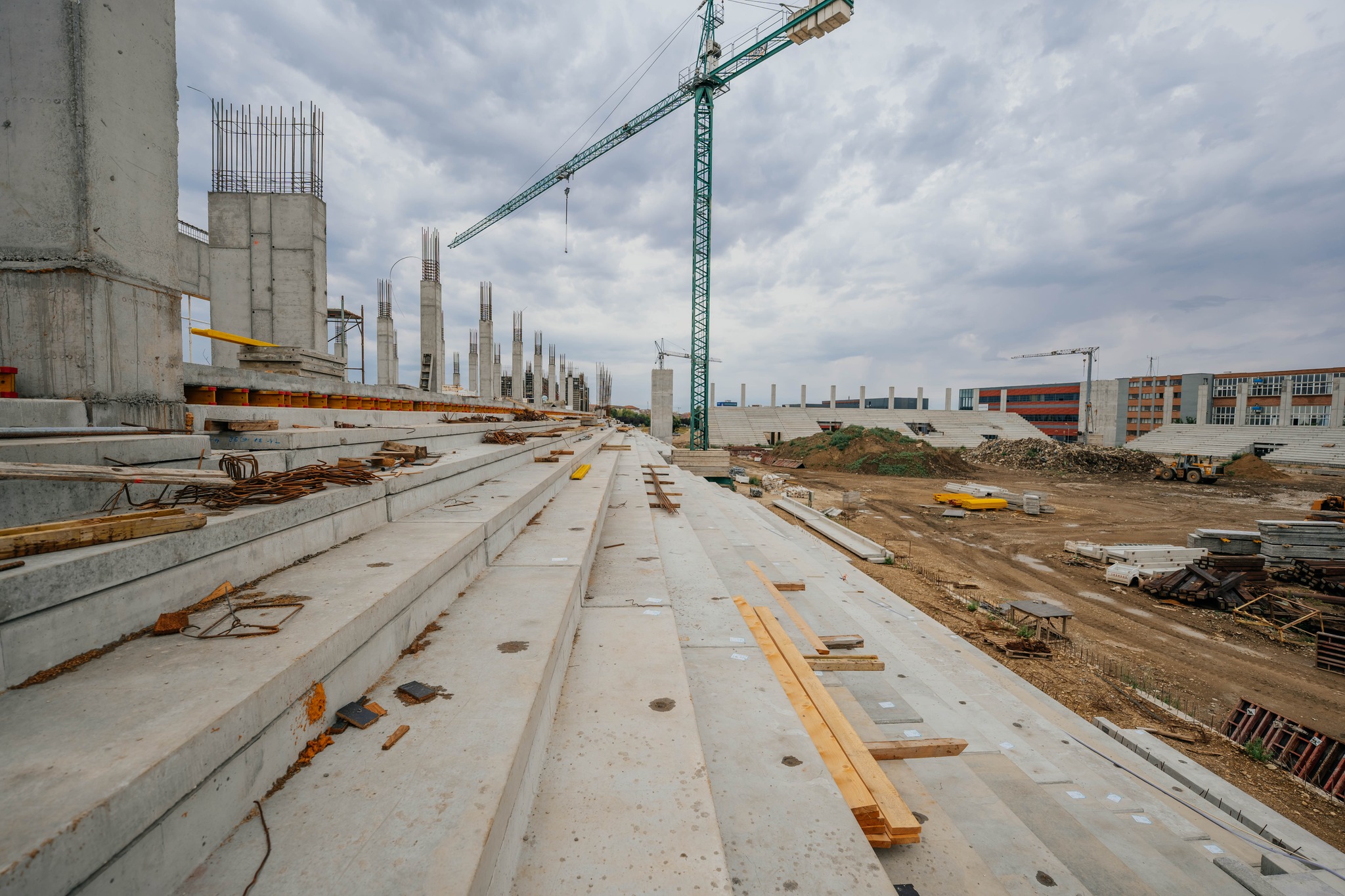 Pe șantierul noului stadion din zona Calea Buziașului, lucrările avansează într-un ritm susținut