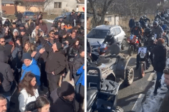 VIDEO | Comunitatea îl conduce pe ultimul drum pe Mario, băiatul de 15 ani ucis. Motocicliști și sute de oameni au aprins lumânări și au lăsat flori în memoria lui