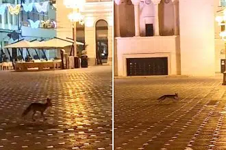 VIDEO. Apariție rară în inima Timișoarei. O vulpe și-a făcut drum prin Piața Operei, în căutare de hrană