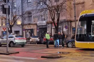 Accident spectaculos în centrul Timișoarei. BMW vs. tramvai Bozankaya! Circulația blocată pe mai multe linii