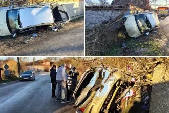 Mașină proiectată pe un gard într-un accident Spectaculos pe un drum din Caraș-Severin