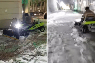 VIDEO | Când autoritățile întârzie, cetățeanul acționează. Un lugojean a deszăpezit singur jumătate din centrul orașului