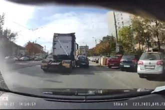 VIDEO | Impact violent pe bulevardul Liviu Rebreanu. Un camion lovește un autoturism în intersecție