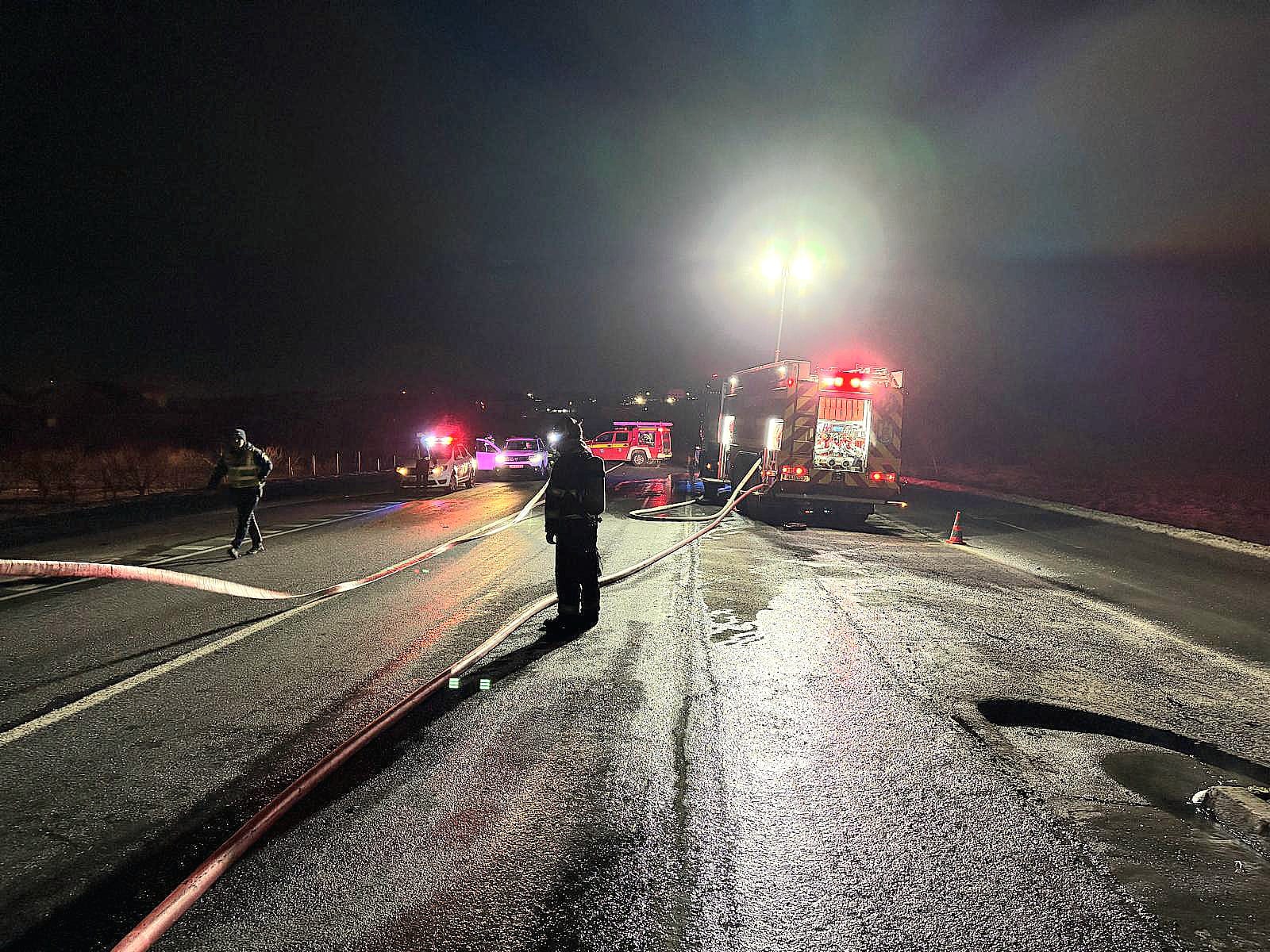 La locul evenimentului au fost mobilizate o autospecială de primă intervenție și comandă, precum și două autospeciale de stingere cu apă și spumă. Potrivit primelor informații, incendiul se manifestă cu ardere generalizată la capul tractor, flăcările fiind vizibile de la distanță.