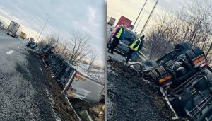 Un TIR s-a răsturnat pe autostrada A1, în zona localității Giarmata. Circulația se desfășoară normal