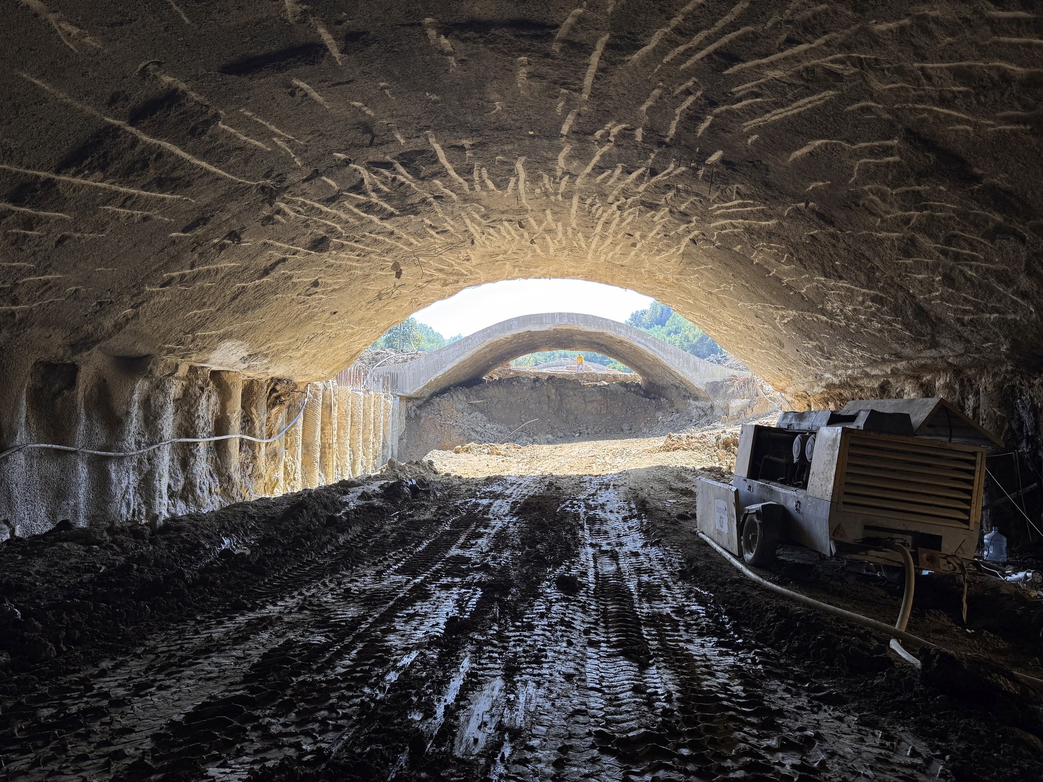 Tot la tunelul 2, portalul principal, cu o lungime de 234 de metri, a fost finalizat, iar sub acesta au început excavațiile. La cealaltă galerie, unde portalul este mai scurt, lucrările de pătrundere în subteran sunt de asemenea în curs.