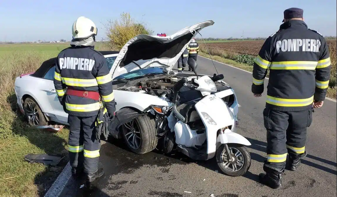 Accident grav de circulatie in localitatea Lovrin. Un bărbat, în vârstă de 47 de ani, a condus un autoturism pe DJ 594, dinspre localitatea Lovrin înspre localitatea Gottlob,din județul Timiș. Soferul s-a angajat in depășite, fara sa se asigure. Manevra gresita l-a facut sa izbeasca in plin un moped electric condus de un bărbat, în vârstă de 92 de ani.