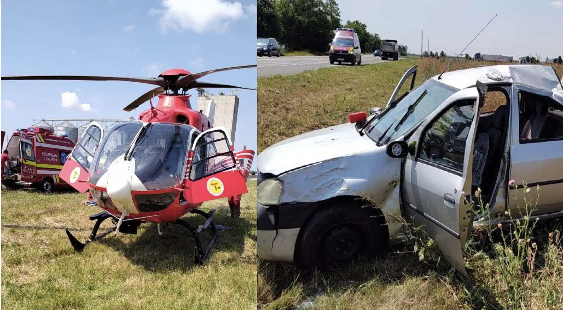 Un copil de 13 ani, luat de elicopterul SMURD, în urma unui accident rutier. Accidentul s-a petrecut în localitatea Vinga, judetul Arad.