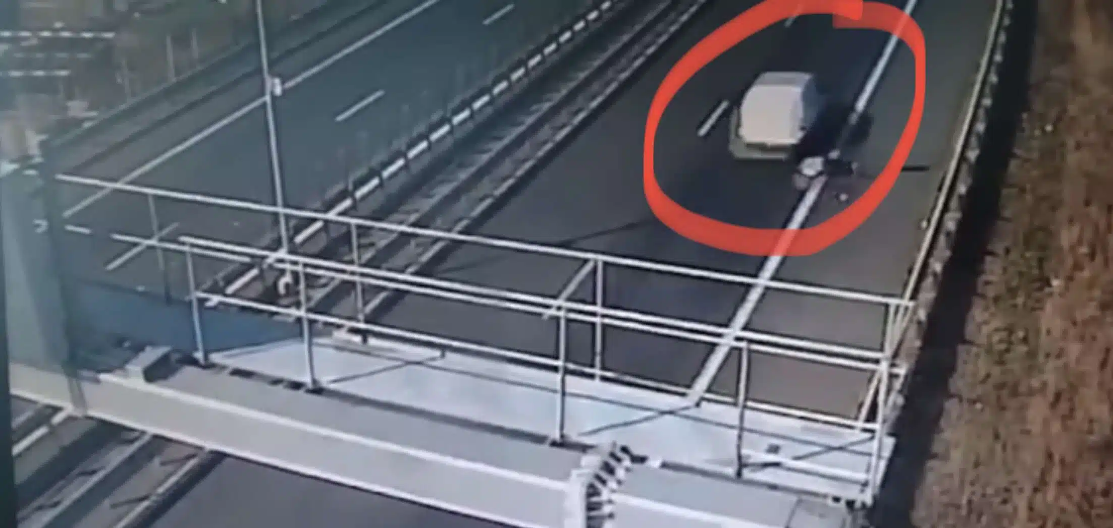 Incidentul șocant a fost surprins de camerele de supraveghere montate pe A1, pe sensul de mers Arad-Nădlac. Bărbatul s-a rostogolit pe carosabil și a ajuns pe banda de rezervă, rănit grav.