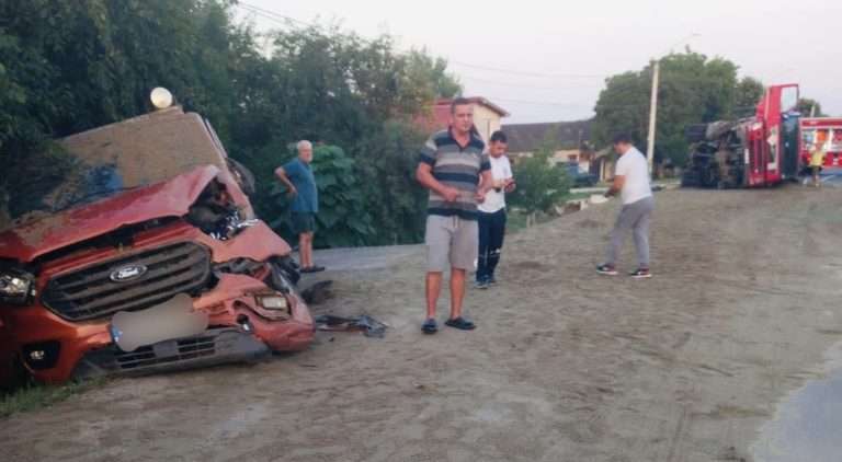 Un tir încărcat cu nisip s-a răsturnat, în această dimineață, în județul Timiș