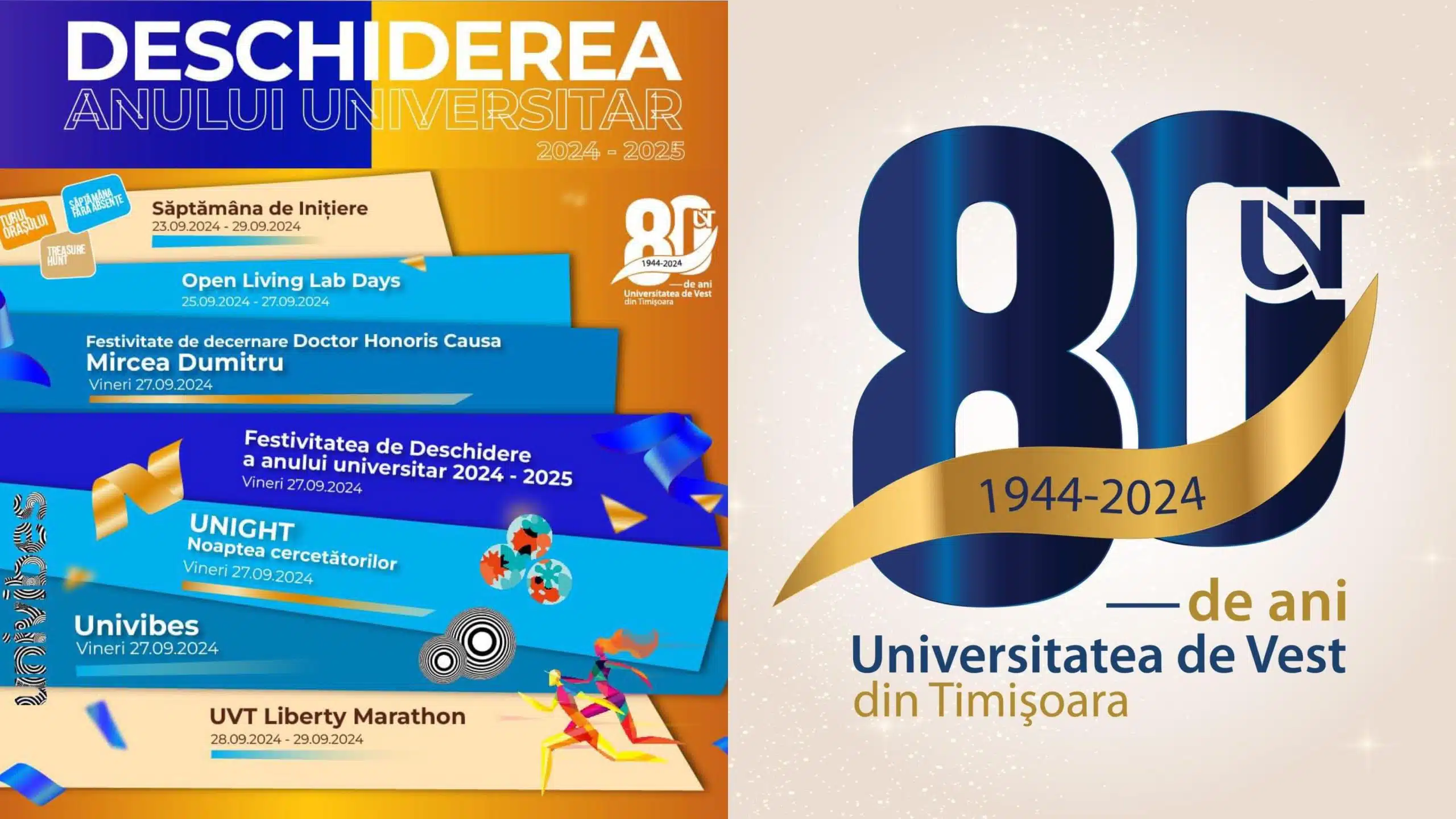 Anul acesta, începutul activităților academice la Universitatea de Vest din Timișoara (UVT) este marcat de o serie de evenimente speciale, pline de energie și efervescență, ce subliniază nu doar debutul unui nou an universitar dinamic, ci și aniversarea a 80 de ani de tradiție și excelență – momentul istoric „UVT80”.