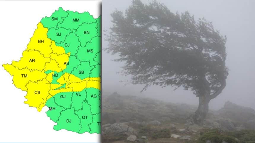 Meteorologii au emis o avertizare cod galben de intensificări ale vântului, care va afecta mai multe județe din vestul și centrul țării.
