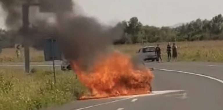 Video. BMW distrus de flăcări în apropiere de Lugoj