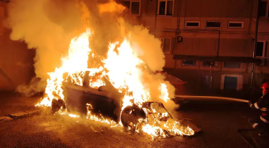 „În această noapte, prin apel la numărul unic de urgență, am fost anunțați despre izbucnirea unui incendiu la un autoturism pe Bulevardul Republicii din municipiul Reșița. La fața locului au intervenit pompierii militari ai detașamentului Reșița cu două autospeciale de stingere. Incendiul a fost lichidat, însă flăcările au afectat și un al doilea autoturism parcat în apropiere”, transmite ISU Caraș-Severin.