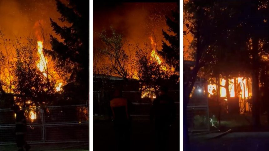 O casă din lemn a fost cuprinsă de flăcări uriașe în Chevereșu Mare. Pericolul pentru vecini a fost imens. Un bărbat s-a autoevacuat