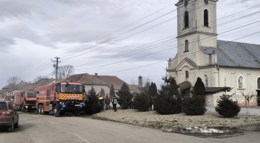 „Duminică, 25.01.2026, în jurul orei 12:55, am fost solicitați să intervenim pentru stingerea unui incendiu izbucnit la un lăcaș de cult din satul Sacoșu Mare (comuna Darova).