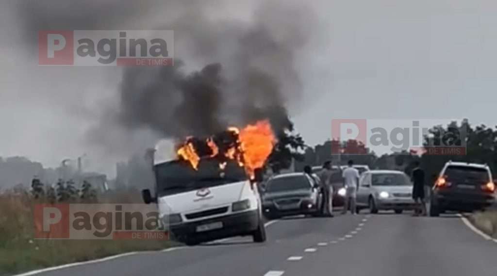 Un microbuz de curierat a luat foc în drumul dintre Sânandrei și Carani. Șoferul a reacționat prompt și a reușit să evacueze coletele.