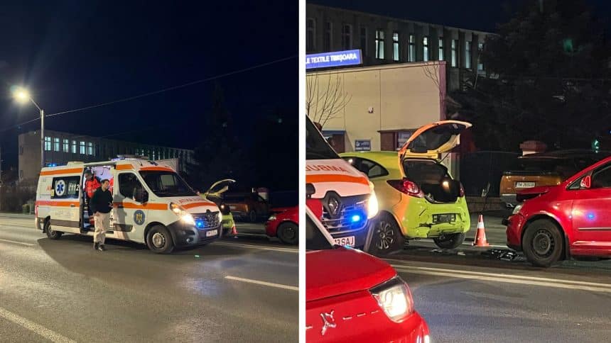 Un accident cu trei autoturisme implicate a avut loc pe Calea Aradului din Timișoara, după ce un bărbat de 45 de ani, aflat la volan sub influența alcoolului, a lovit din spate o mașină care circula regulamentar în fața sa.