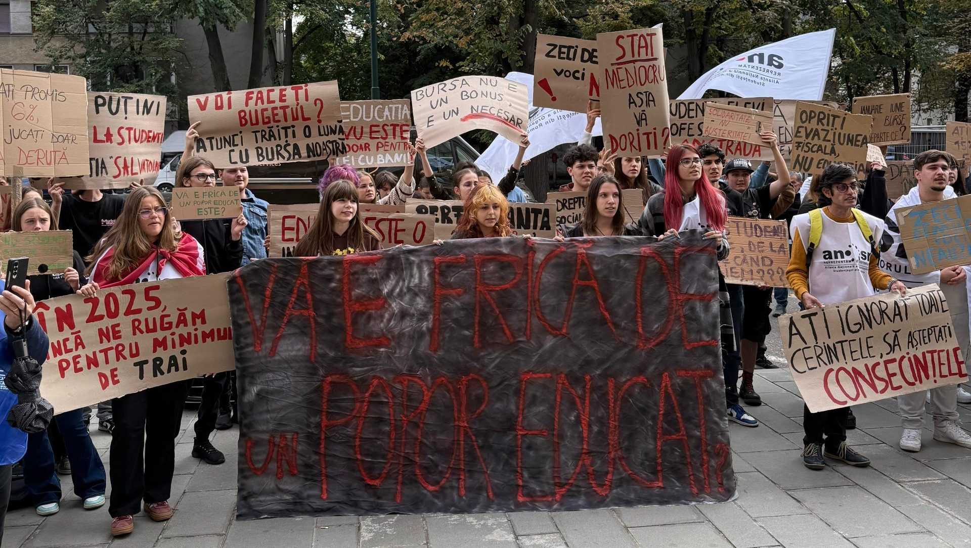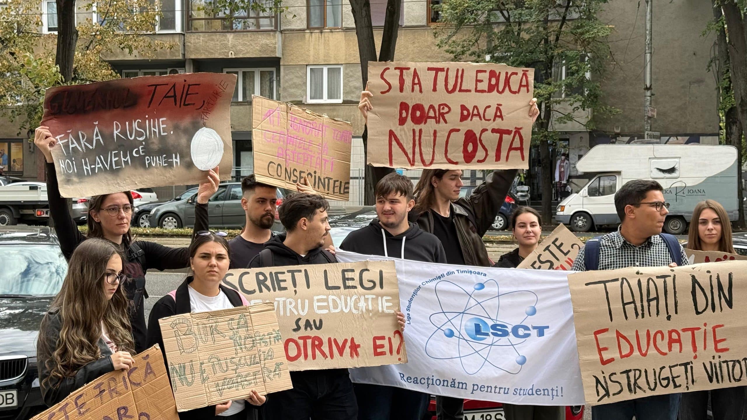 Studenții din Timișoara au protestat în prima zi a anului universitar. Tăierea burselor și transportul feroviar condiționat rămân problemele cele mai apăsătoare. Primăria a dat aviz negativ cererii studenților de a protesta în Piața Operei și în fața Cinema Timiș