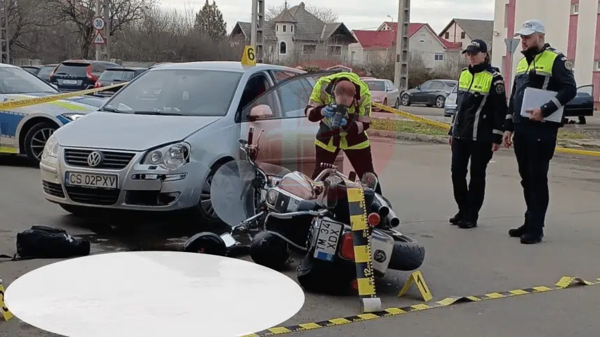 Impact violent în Timișoara. Motociclist și fiul său, aruncați pe asfalt după imprudența unei șoferițe de 21 de ani