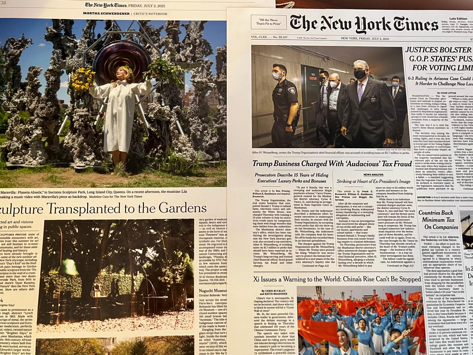 Într-un astfel de spectacol, a fost observată de presa americană. New York Times i-a dedicat coperta și mai bine de jumătate de pagină în secțiunea de artă. O recunoaștere rară pentru un artist străin, necunoscut în SUA.